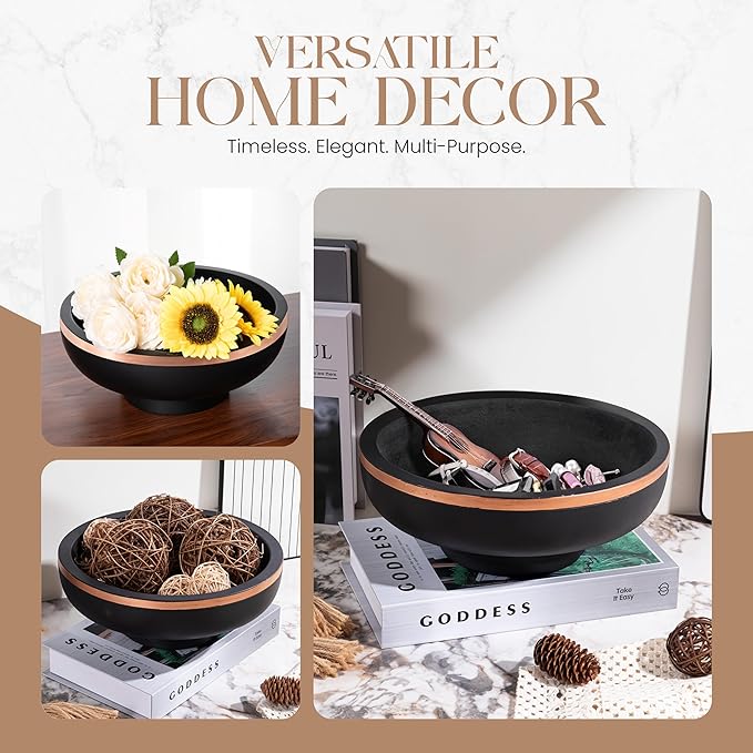 - 【CONCRETE FRUIT BOWL】 This concrete fruit bowl, designed as a stylish pedestal bowl with a matte black finish and rose gold rim, doubles as a decorative centerpiece and functional display. Ideal for use as a concrete bowl, black decorative bowl, or modern fruit holder. Elevate your kitchen counter, coffee table, or dining space with a bold, artisan-crafted statement piece.