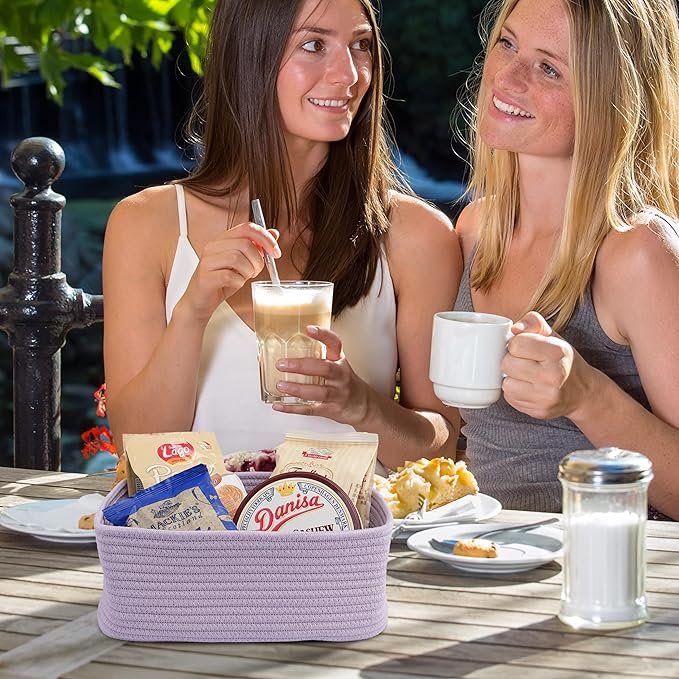 Small Woven Storage Baskets 12“X8”X5“ Decorative Rope Bins for Organizing Shelves, Closets, and Toys, Empty Gift Baskets, Cute Organizer Basket for Home and Office (purple, regular)