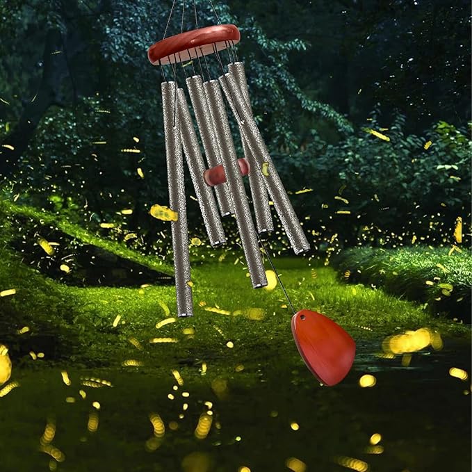 - ♬【Premium Material】Through repeated tests and experiments on a large number of materials, due to the characteristics of pine wood is not easy to crack and decay, we chose pine wood as our wood material. The main body of the wind chime is made of aluminum tubes and chamfered with spray paint, which is rust-proof and sturdy, making the life of the wind chime much longer and more beautiful and durable at the same time.
