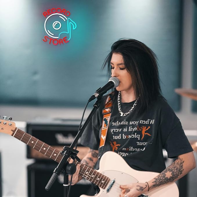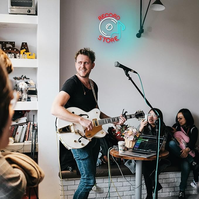 - 【Innovative Design】:The record store neon signs is composed of a white record bule music notation and a red record store letter. The unique design allows led neon light to serve as a music room decoration. Gentle lighting is more charming. It can be placed in a bar or music studio.