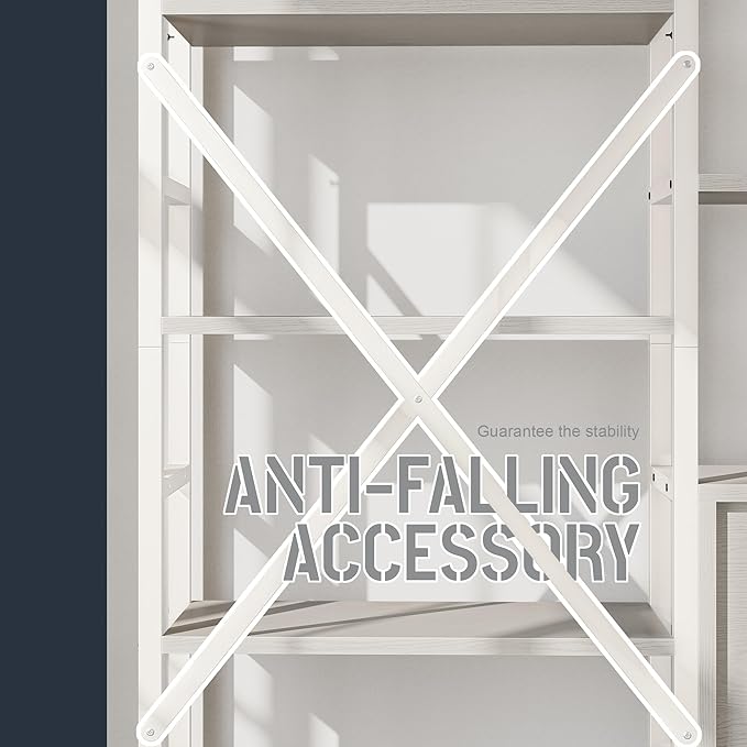 - 【Durable & Stable Construction】Tall bookshelf is crafted with a sturdy steel frame and high-quality wood panels. Bookshelves features a X-shaped bracket, adjustable foot pads, and an anti-tipping kit, enhancing the durability and stability of the bookcases. The robust structure ensures a long lifespan, making it a reliable and durable furniture piece in your home.