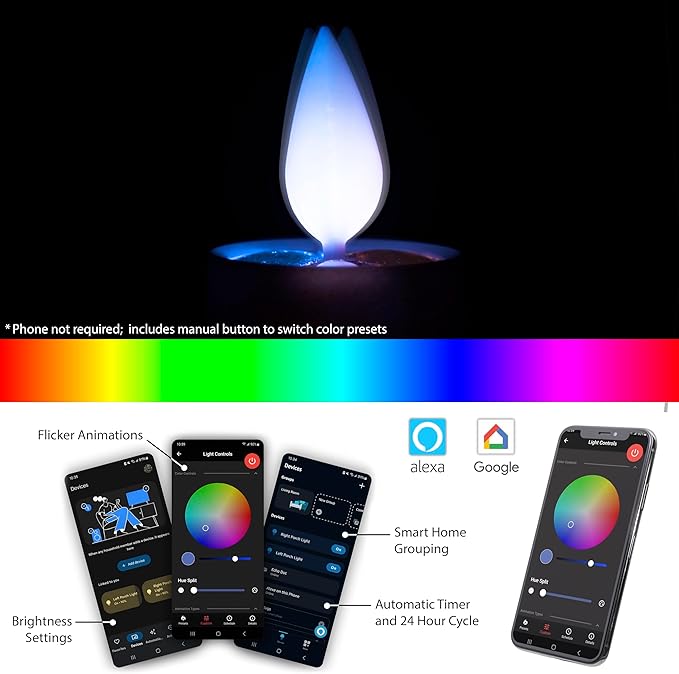 - Smarthome Support: Connect the bulbs to your existing Amazon Alexa or Google Home setup to enable voice commands and grouping with other smart devices; Presets can be easily cycled without an app