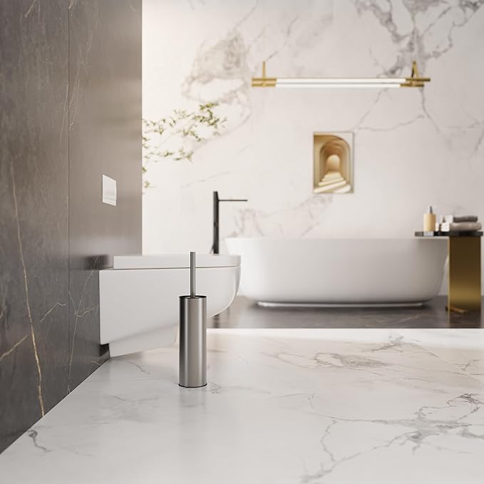 - Space-saving design:Toilet brush and holder fits into tight bathroom areas, making it easy to tuck away; Compact space saving design keeps your toilet brush hidden and provides a sanitary storage.