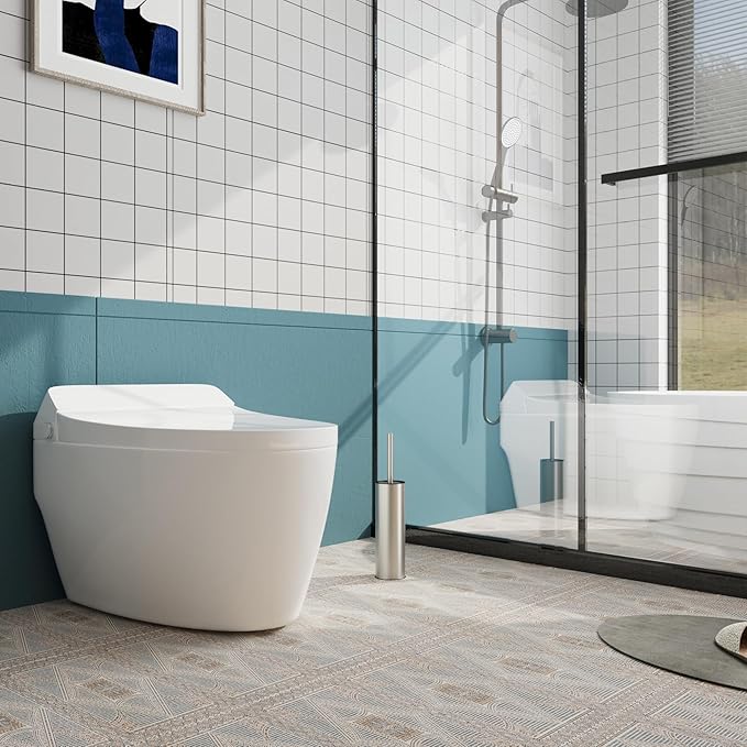 - Splash-proof design:BGL brushed nickel toilet brush set has a cover at the handle to prevent the sewage from splashing on the hand when cleaning the toilet. The cover baffle design protects your hands from stains and block the spread of odors, prevents scratching the toilet when cleaning.