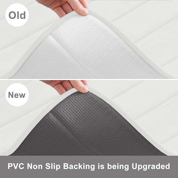 - NON-SLIP PVC BACKING: Bathroom mats feature a non-slip mesh back to prevent the mat from shifting and skidding, and the rubber back prevents water from seeping to the soft surface. WARNING: Place mat on CLEAN DRY SMOOTH FLOOR only. Water under bath mats can cause it to slip. Keep bottom of mat dry. Before using bath carpet, test with foot to ensure it doesn't move