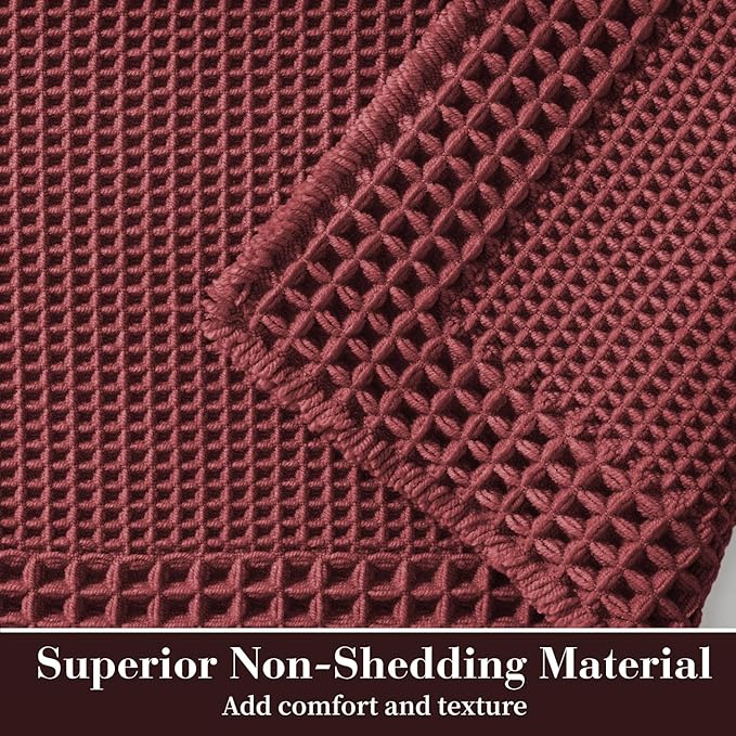 - SUPER ABSORBENT BATH MAT: Our bath mats are designed with a textured waffle pattern that enhances their absorbency. The breathable waffle-like indents and upgraded thick yarns will quickly soak up water from wet feet or drips after a shower and keep the surface dry.