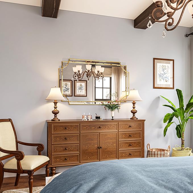 Kelly Miller 30"x48" Large Gold Mirror for Wall Decor, Modern Decorative Mirror Rectangle Wall Vanity Mirror Bevelled Full Length Mirror for Bathroom Living Room Bedroom Farmhouse Fireplace Entryway