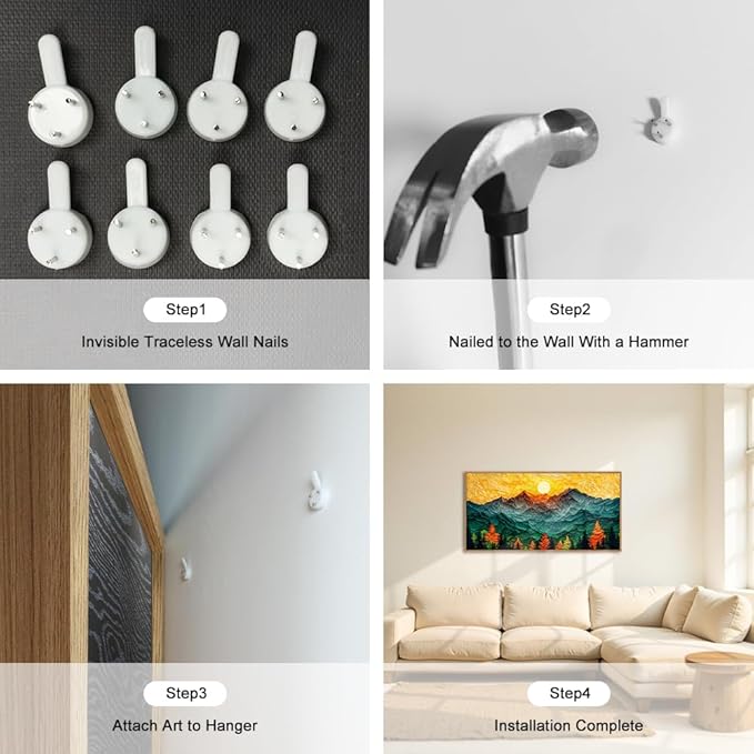 - 【Easy To Hang】This golden sunset wall decor measures 20x40 inches (50x100cm). The provided hanging kit makes it easy to exhibit this artwork. Considering the measurements of your wall, you can effortlessly install the piece, transforming your area into a welcoming haven graced with elegant artwork.