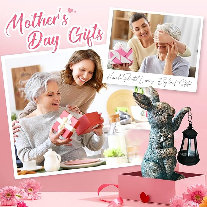 - Charming Rabbit Design:Features a lovely rabbit statue holding a glowing lantern in one paw and a cute carrot in the other, with lifelike details and a whimsical expression for added garden charm.