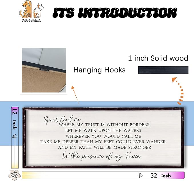 Spirit Lead Me Wall Decor 32"x12" Christian Scripture Worship Song Religious Bible Verse Wooden Framed for Bedroom Office Large Wall Art Hanging Sign (Black)