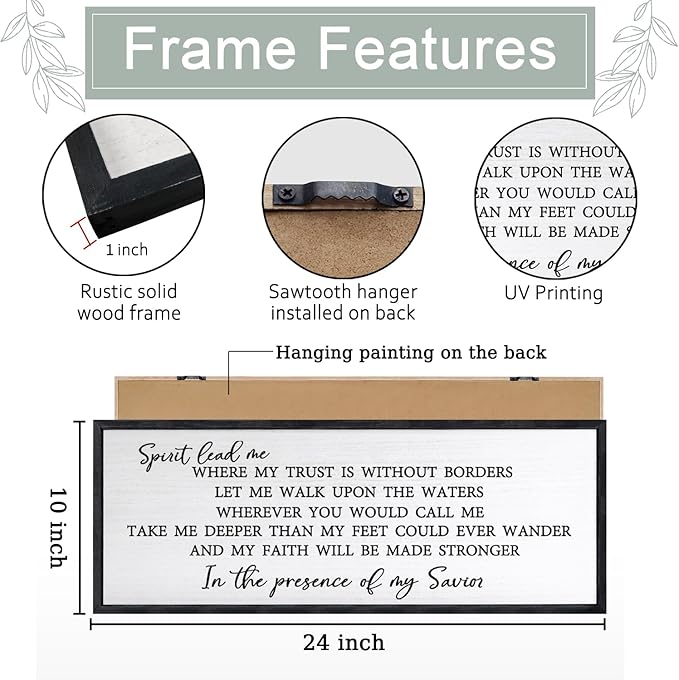 Spirit Lead Me Wall Art Decor 24×10 Inch Christian Scripture Office Inspirational Lyrics Ready to Hang Wooden Framed Sign (Black)