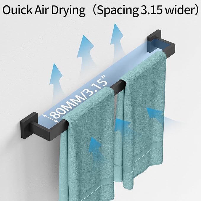 - 【PERFECT DETIAL】Our Matte Black towel bar is designed with screw assembly rather than welding, making it more strong & load-bearing capacity than other models on the market.Each double towel bar features an ultra-high temperature matte black finish, offering a smooth and elegant appearance that resists oxidation, fading, and chipping