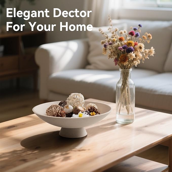 Decorative fruit bowl for Home Decor Large Modern Handicraft Key Bowl for Entryway Table Stylish Centerpiece Purse Bowl Pedestal bowl for Kitchen Counter Coffee Table(Artificial Stone Beige)