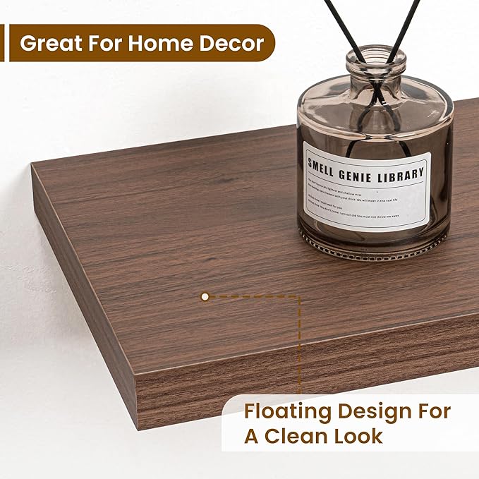 36 Inch Floating Shelves, 9.3 Inch Deep Rustic Wall Shelves - Extra Deeper Wall Mounted Storage Shelves for Bathroom, Kitchen, Living Room (Walnut, Set of 2)