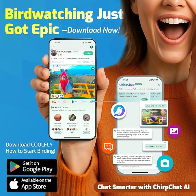 - γπππππ©ππ’π ππ§ππ πΌπ π½ππ§π ππππ£π©ππππππ©ππ€π£γGet instant alerts when feathered visitors arrive at your outdoor feeder. Watch, save, and effortlessly share recordings via the CoolFly app. Post your sightings on CoolFly square for instant AI-powered species recognition or tap into the community's collective knowledge. Turn every bird visit into an engaging, educational journey