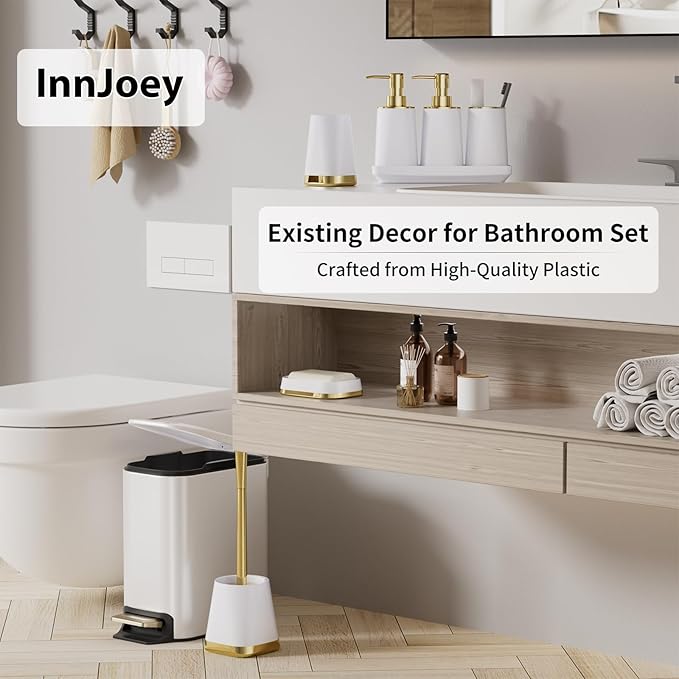 - White Bathroom Accessories Set: Match white bathroom set with our coordinated bathroom accessory set for bathroom. Our bathroom decor sets with stainless steel&plastic accessories create a stylish comprehensive to the bathroom set styles. Maximize your countertop space with this white bathroom accessories.
