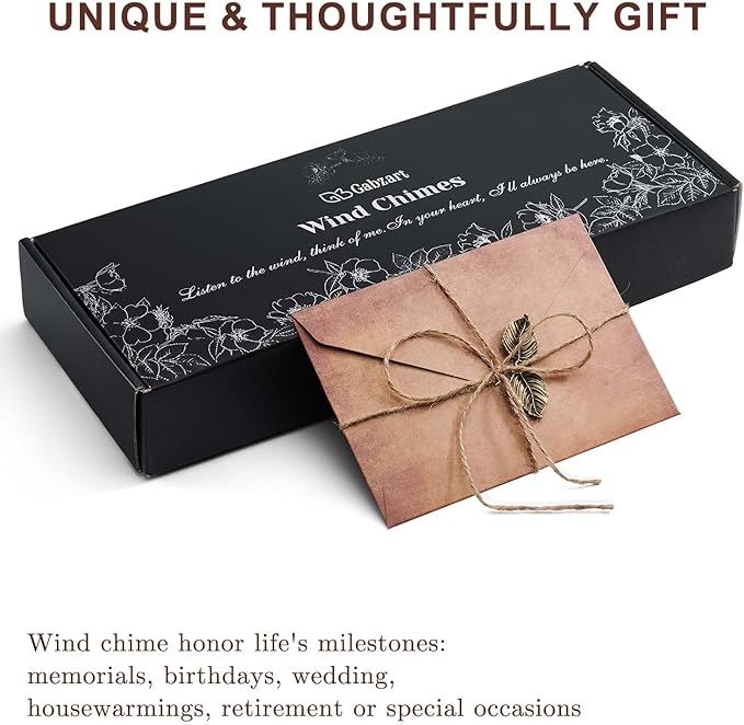 - Unique & Thoughtfully Gift: Beautifully gift boxed with a set vintage-inspired linen envelope, the wind chime honor life’s milestones: memorials, birthdays, wedding, housewarmings, retirement or special occasions. A heartfelt gift for moms, dads, grandparents, family or friends seeking solace or celebration.
