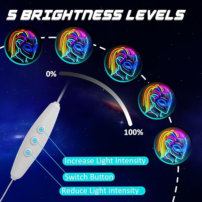 - Dimmable Design: The neon light sign features a precise five-level dimming function. Easily adjust the brightness to suit any mood. Perfect for creating a warm home ambiance, a vibrant party setting, or a focused workspace. Covers all your lighting needs