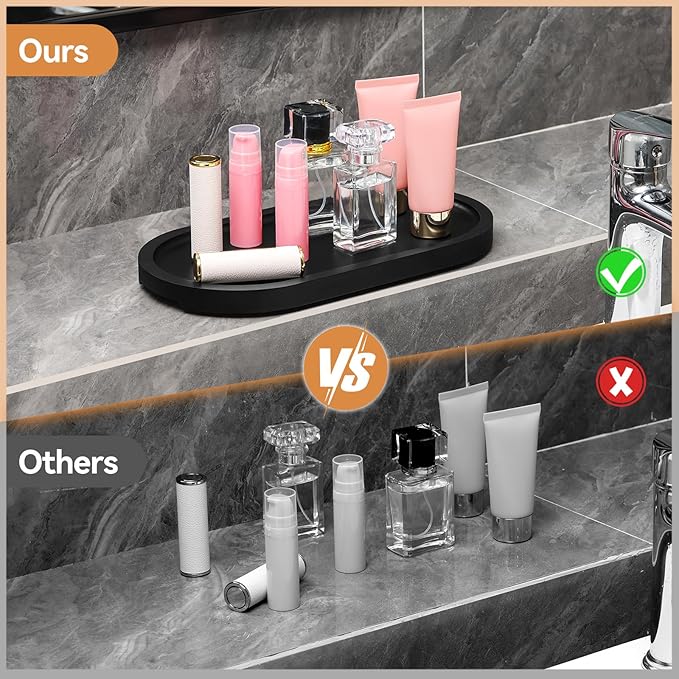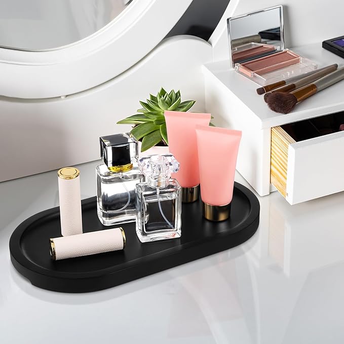 - 【Sleek and Functional Bathroom Tray】 This oval bathroom tray provides an elegant way to organize your essentials like soap dispensers, candles, or skincare bottles while keeping your bathroom counter clean and stylish