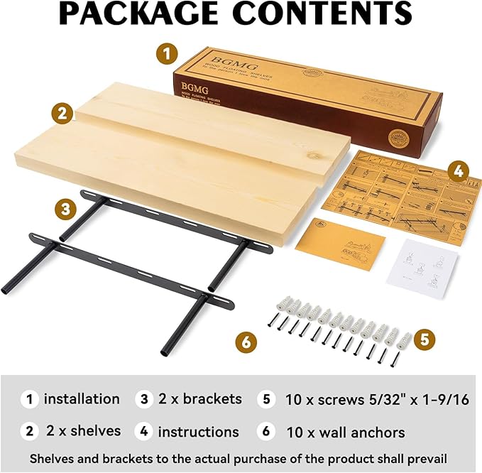 - ๐๐๐ฌ๐ฒ ๐๐จ ๐๐ง๐ฌ๐ญ๐๐ฅ๐ฅ: These floating shelves come with stainless steel galvanized invisible brackets, toggle bolts for drywall, and simple instructions to help you install them. These wall shelves are easy to assemble, requiring only two boards and the necessary screws and hardware. We also provide detailed instructions for quick and easy assembly