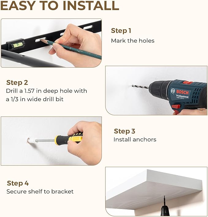 - Sturdy & Secure design: These 39.4-inch floating shelves feature a durable, concealed mounting bracket that offers reliable support for your belongings. Engineered for hassle-free and stable installation, each shelf includes all the required hardware to ensure a strong, wobble-free hold—perfect for showcasing your favorite decor, photos, or everyday items with confidence and style.