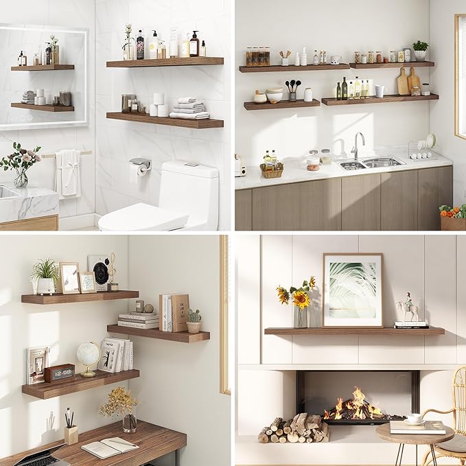 - Maximize Your Space: Perfect for small apartments, kitchens, and cozy living areas, these floating wall shelves help free up floor space while adding style. They create the illusion of a more open room, offering a smart way to display plants, collectibles, and décor without compromising on space.