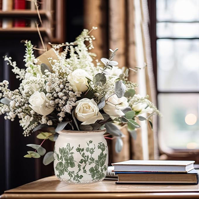 - Vintage Flower Pot: you will get 1 beige and green ceramic planter, which crafted with a distressed scroll pattern and crackle glaze finish, adding a rustic farmhouse vibe to both modern and traditional decor styles; Note: plants not included