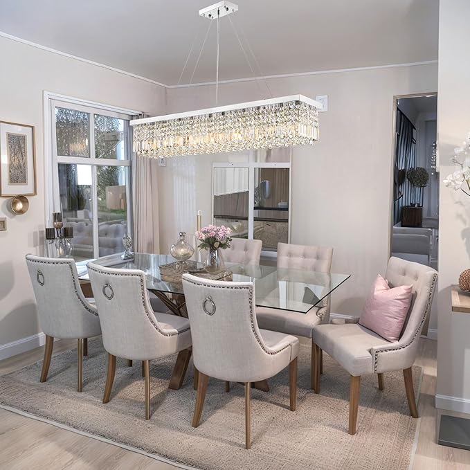 - EASY INSTALLATION: This dining room chandelier comes with all necessary mounting hardware and a detailed instruction manual for quick, hassle-free setup. The user-friendly design and secure packaging ensure that each crystal arrives intact – your new chandelier will be ready to shine in your foyer, dining area, or kitchen with minimal effort.