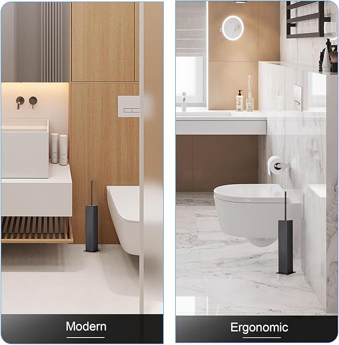 - Heavy-Duty 1 mm-Thick 304 Stainless Steel & Matte Black Finish – Our 304 stainless steel toilet brush uses industrial-grade 1 mm gauge steel with a durable matte black toilet brush powder coat that resists rust, corrosion, and chipping—even in the steamiest bathrooms.