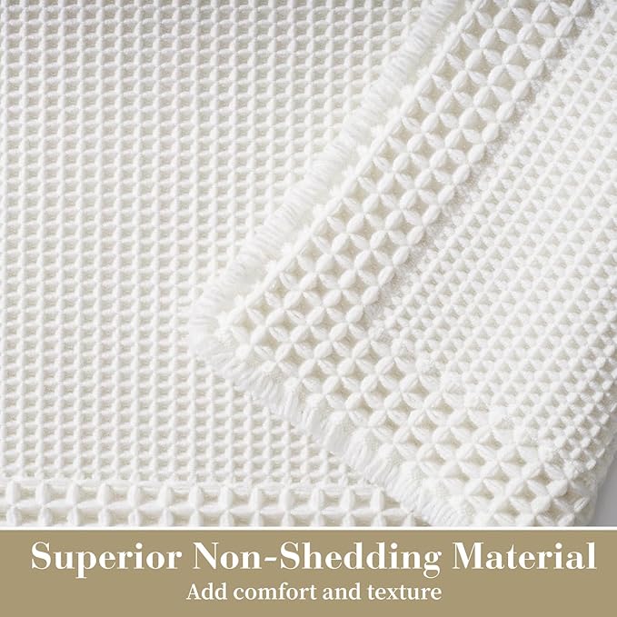 - WAFFLE DESIGN WITH TASSELS: Distinctive textured appearance adds a touch of stylish and texture to the bathroom decor. The waffle bath rugs can complement various bathroom styles, such as boho and farmhouse style.
