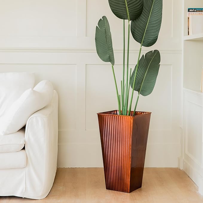 - DIMENSIONS: Large 22-inch tall copper planters measure 14 inches wide and deep, perfect for statement plants and outdoor displays