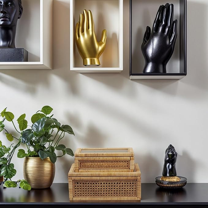 - The Wicker Box with Lid is designed to blend seamlessly with various decor styles, especially coastal and bohemian. Whether placed on shelves or tables, these Decorative Boxes with Lids for Home Decor serve as a stylish addition to your space, offering both functionality and aesthetic appeal.
