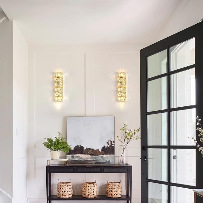 - 【Elegant design】This wall sconce features a tube-shaped lampshade with 6-layer elegant crystal blocks and is dressed in gold finish, showing an elegant modern style and adding a touch of brilliant view to your interior home.