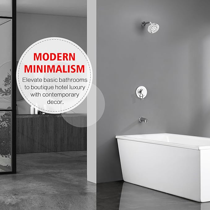 - 2. Modern Design with Dual-Function Water Control: Featuring a sleek, contemporary aesthetic, this tub and shower faucet allows you to effortlessly adjust the water temperature, flow and mode switching with a single handle, providing a seamless and user-friendly experience.