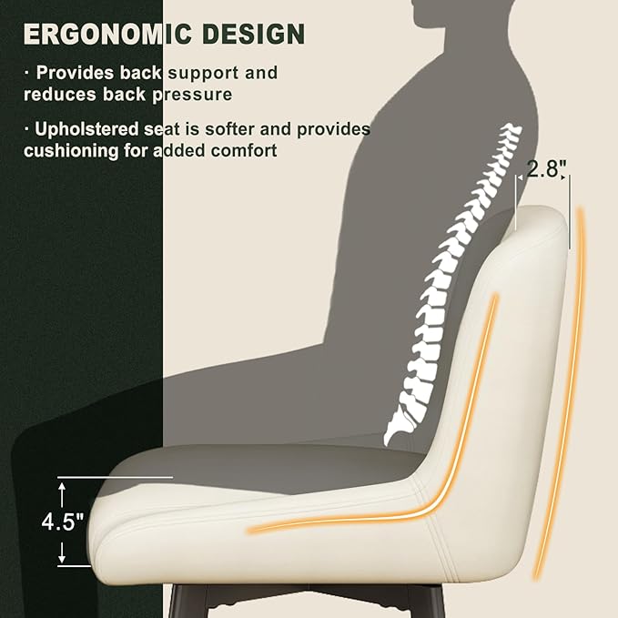 Swivel Bar Stools, 26''H Upholstered Barstools with Backs, Modern Counter Height Bar Stool Chairs for Kitchen Island, Metal Legs (Antique White- Faux Leather, Set of 2-26" H)