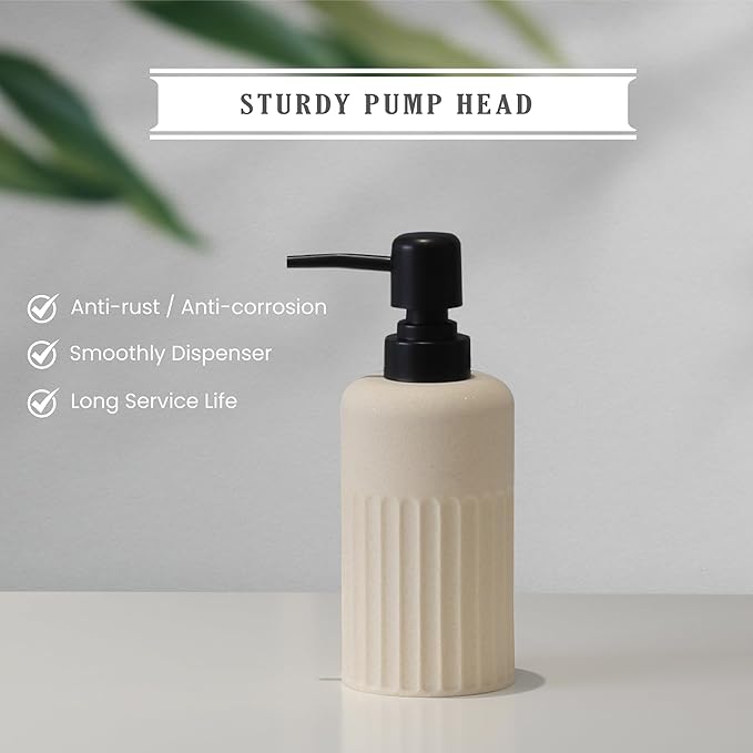 - Elegant Design: The bathroom soap dispenser set features fine and smooth sand finish and exquisite lines, providing a pretty and attractive appearance. With perfect neutral colors, the bathroom accessories sets complete effortlessly blends into and elevates any bathroom, from contemporary to classic.
