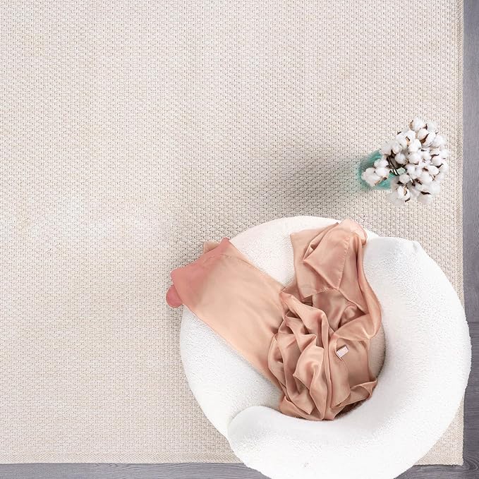CAMILSON Easy Jute Rug 9x12, Indoor Outdoor Off-White Farmhouse Area Rugs for Living Room Patio and Kitchen Rug, Solid Woven Design, Easy-Cleaning, Washable Outside Carpet Alfombras (9 x 12)
