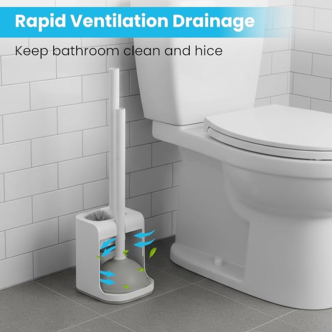 - COMBO SET: Includes both a toilet plunger and bowl brush in sleek white finish for complete bathroom cleaning needs
