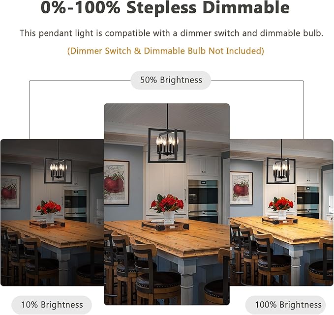 - Bulb Requirement & Dimmable: Equipped with 6 E12 bases, this dining room light fixture over table supports various bulb types, including incandescent, LED, CFL, and halogen (Bulbs NOT Included).. The dining room light fixture is dimmable when used with dimmable bulb and compatible dimmer switch (Switch NOT Included) for adjustable lighting