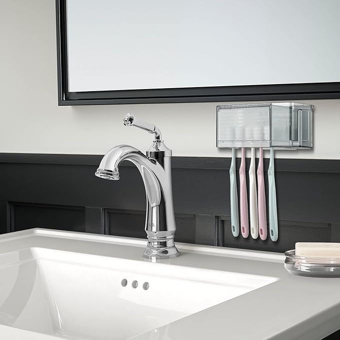 - Toothbrush holder wall mounted with cover keeps toothbrushes clean and neat.