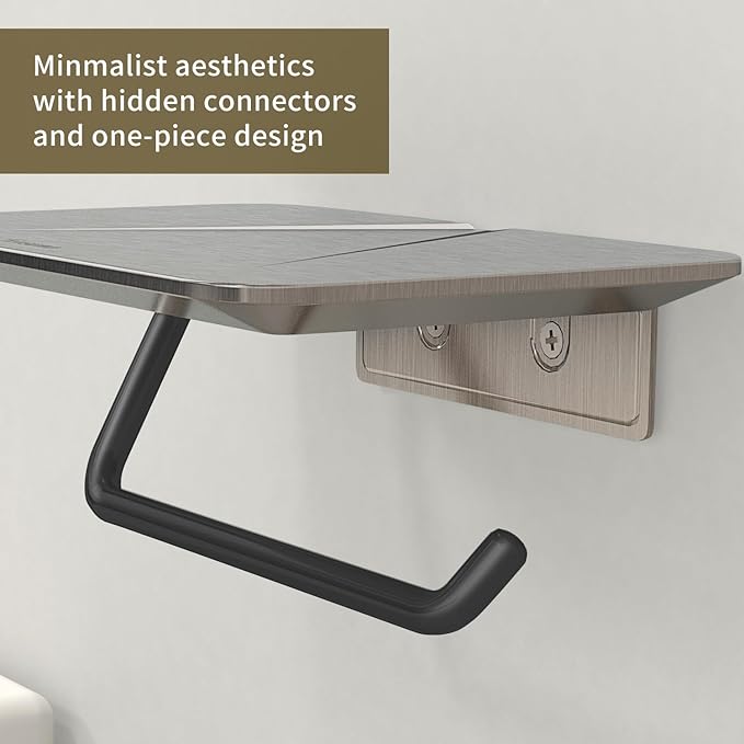- 2、FUNCTIONAL SHELF: The integrated shelf on the toilet paper holder allows you to conveniently store small essentials like wet wipes, phones, or decorative items, keeping your bathroom organized and clutter-free.