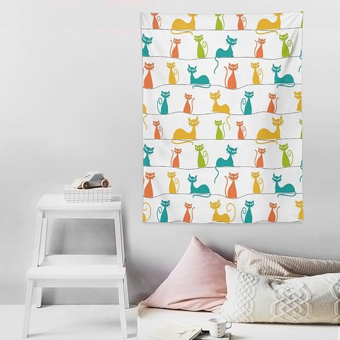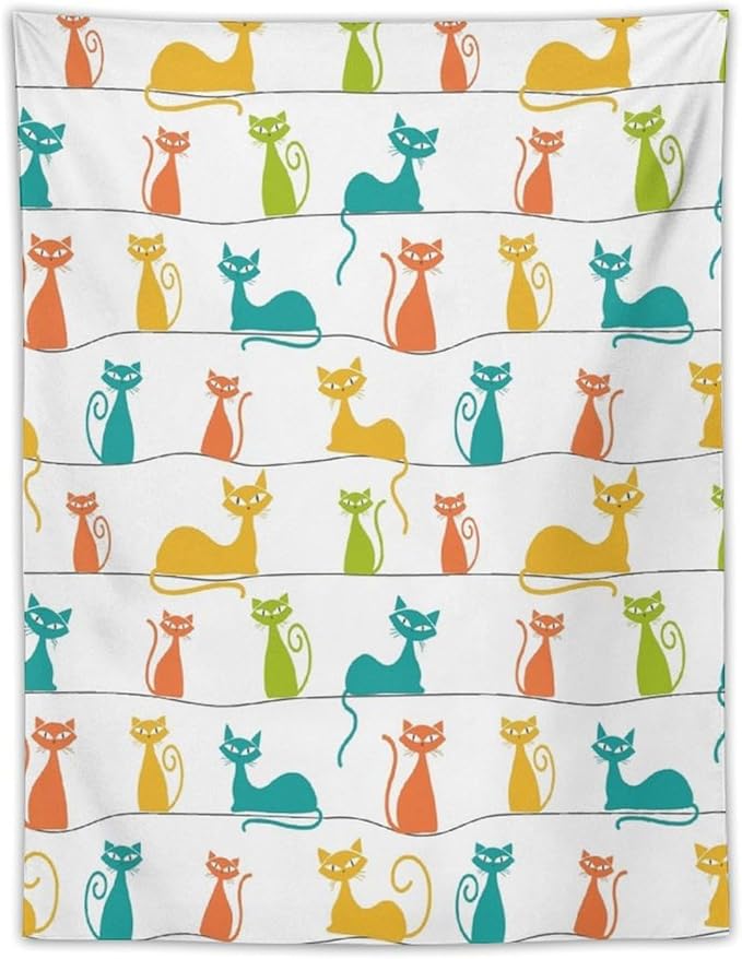 ICMOLYYENLO Boho Medieval Cat Tapestry, Abstract Atomic Starburst Geometric Aesthetic Art Wall Hanging For Bedroom Living Room Dormitory 30x40 Inches