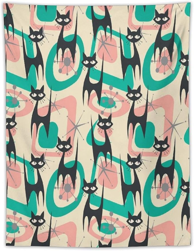 ICMOLYYENLO Boho Medieval Cat Tapestry, Abstract Atomic Starburst Geometric Aesthetic Art Wall Hanging For Bedroom Living Room Dormitory 40x60 Inches