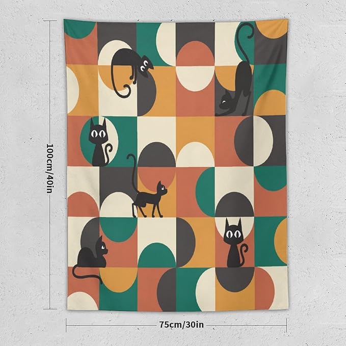 ICMOLYYENLO Boho Medieval Cat Tapestry, Abstract Atomic Starburst Geometric Aesthetic Art Wall Hanging For Bedroom Living Room Dormitory 50x60 Inches