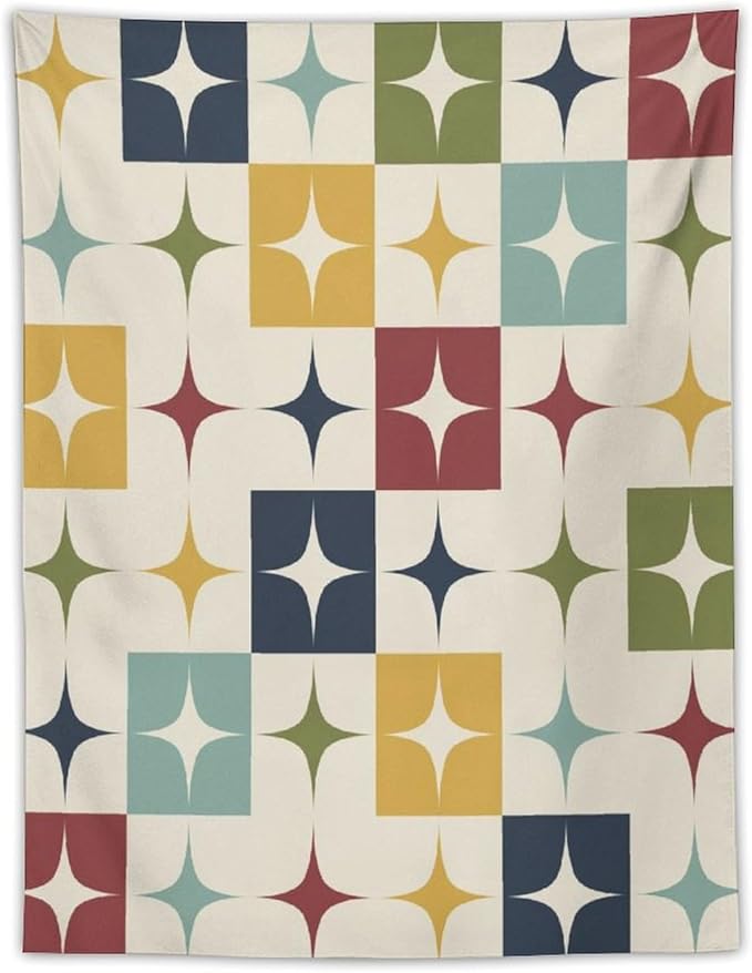 ICMOLYYENLO Boho Medieval Cat Tapestry, Abstract Atomic Starburst Geometric Aesthetic Art Wall Hanging For Bedroom Living Room Dormitory 60x80 Inches
