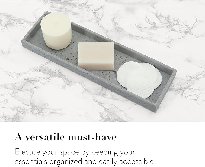 - 4 Piece Bathroom Accessory Set: Item includes 1 x soap dispenser, 1 x toothbrush and toothpaste holder, 1 x vanity tray and 1 x bathroom tumbler. Has most things you need for a bathroom. Made out of premium polyresin with unique stone textured shell, the bathroom accessories set made your bathroom stand out more.
