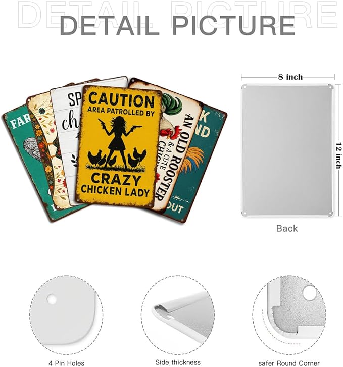- Funny Farmhouse Design: Featuring vintage designs and humorous chicken sayings, these metal tin signs add charm and personality to your chicken coop accessories and outdoor decor