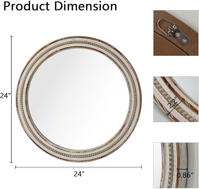 - Versatile 24-Inch Round Mirror - Perfect size for any room: use as a bathroom wall mirror, living room mirror, bedroom mirror, or entry mirror