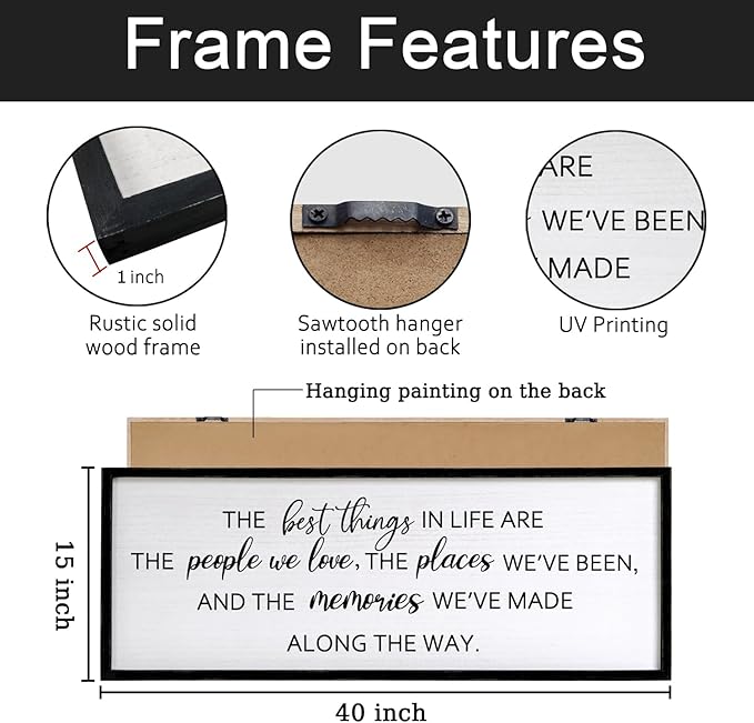 - 【High-quality Solid Wood】The aesthetic motivational horizontal long wall decor saying is handcrafted of high-quality solid wood with a distressed finish, white text design, and black solid wood frame, which is simple and durable, not easy to fade and deform, and can accompany you and your lover for a long time, witnessing the sweetness of love.