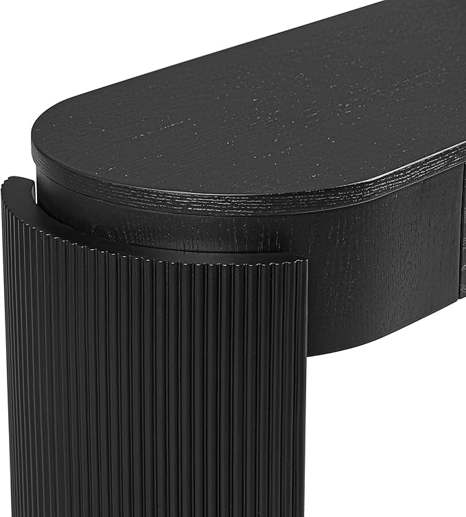 55" Sofa Table with Oval Top and 2 Drawers, Entryway Console Table with Fluted Design for Hallway,Foyer,Entry and Living Room (Fully Assembled-Black)